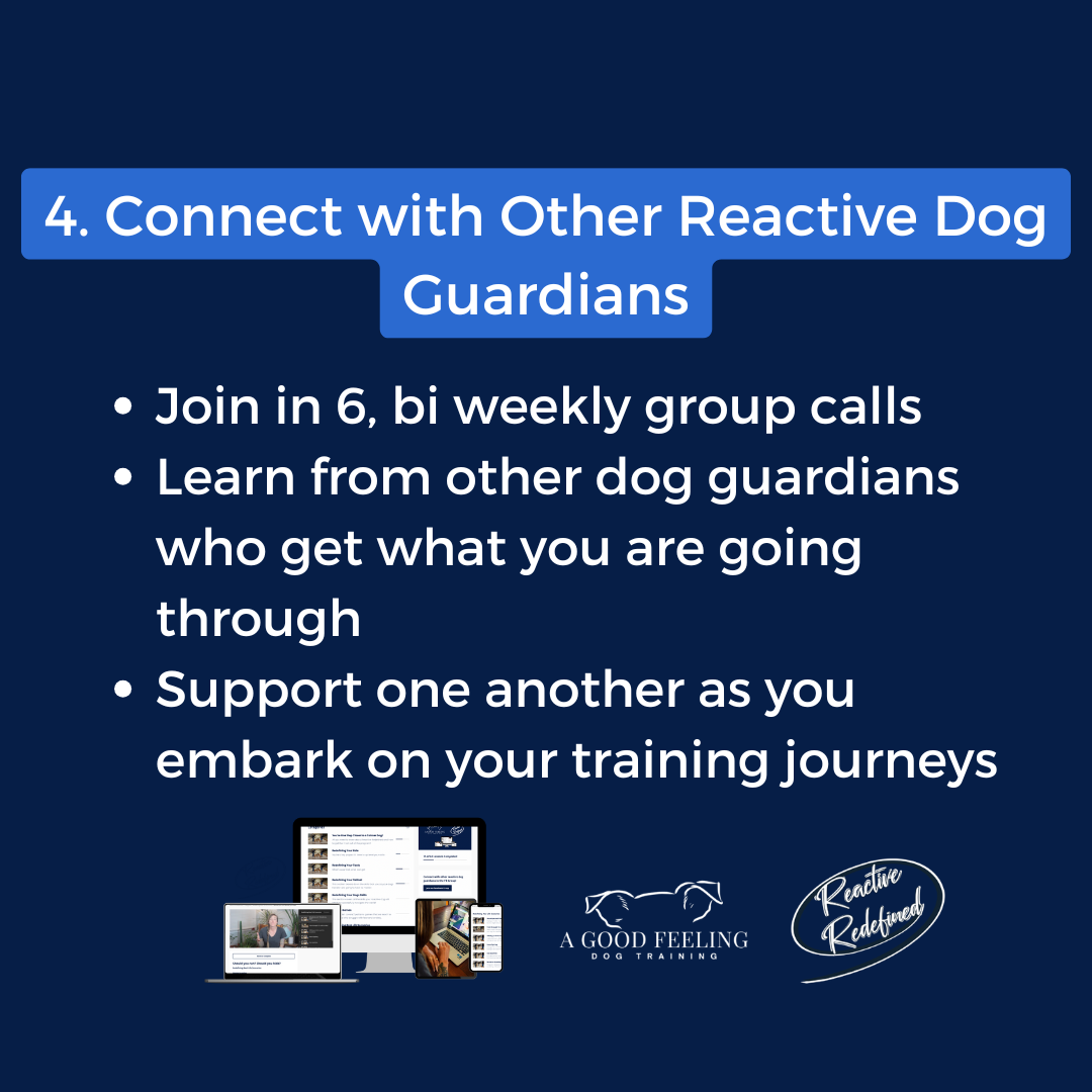 - Connect with other reactive dog guardians that understand exactly what you're going through.