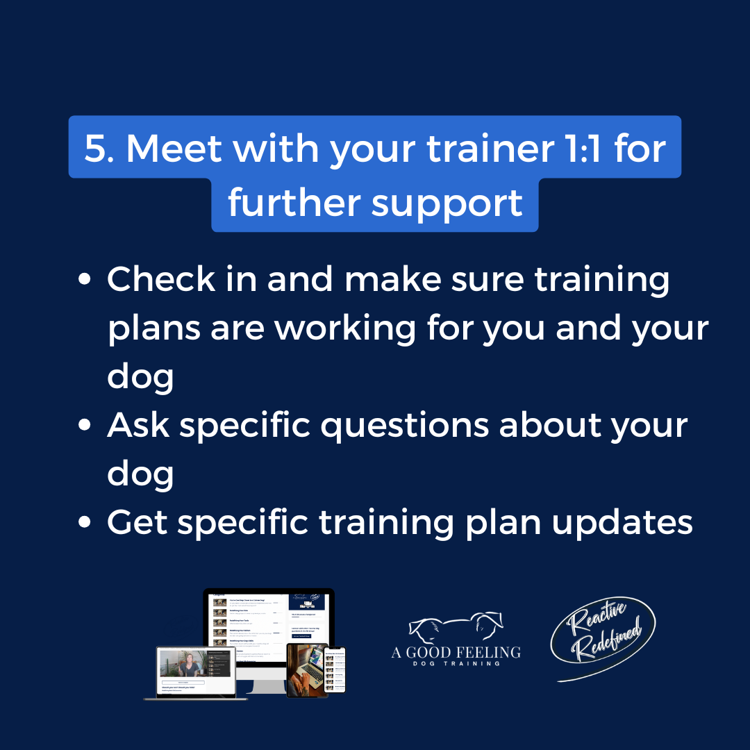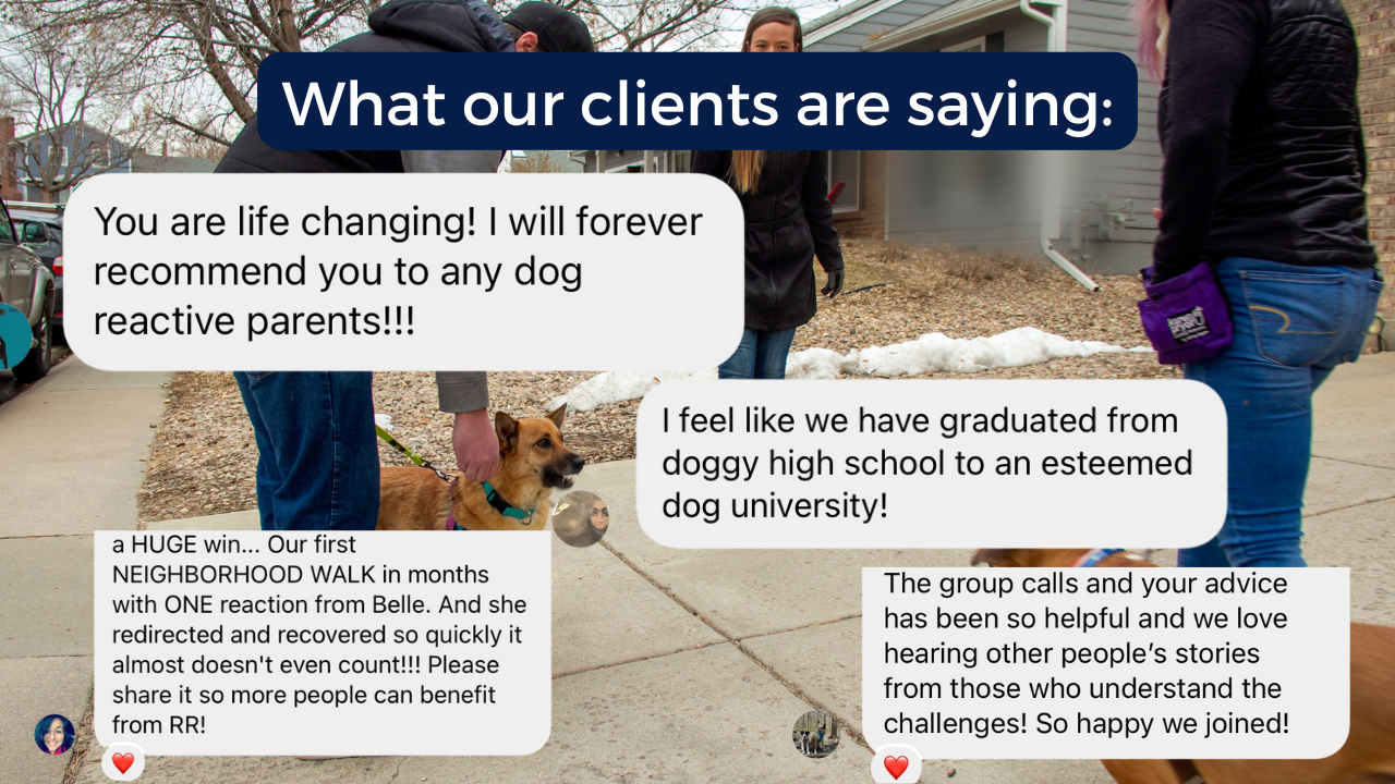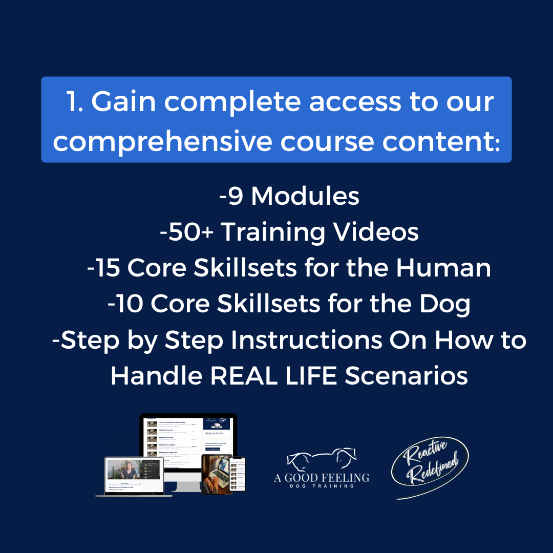 With the skills you'll learn in the course content you'd be good to go but we want to make sure you have the EMOTIONAL support and ACCOUNTABILITY to make huge strides with your reactive dog!
