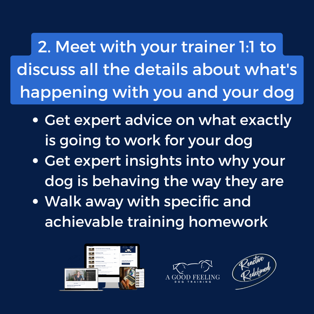 - Co-Create A Training Plan to know exactly what to do to change your dogs behavior by the end of the program — or your money back.